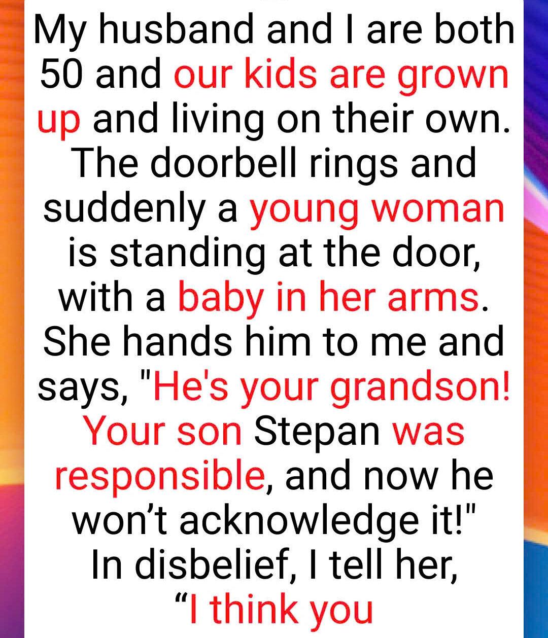 When the doorbell rang, the last thing they expected was a young woman thrusting a baby into their arms, claiming it was their grandson. The bewildered couple explained they had only daughters, not sons, leaving the young woman sheepishly heading upstairs to confront the correct neighbors.
